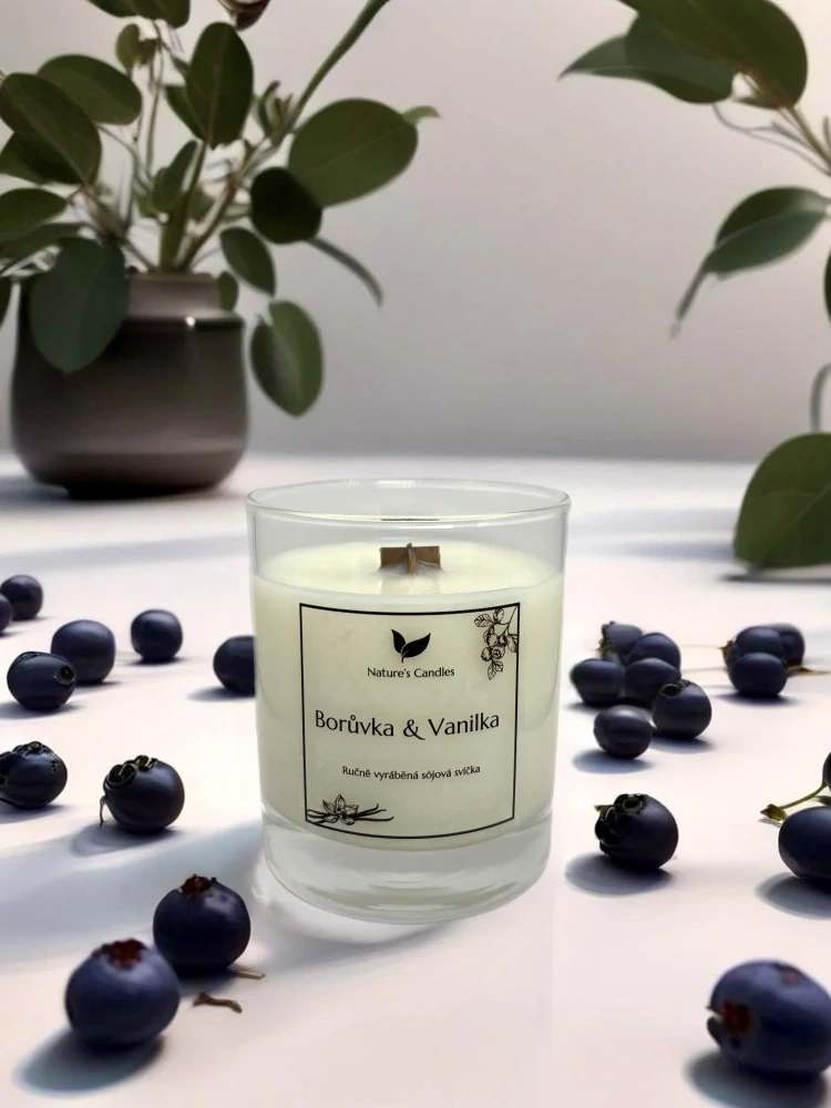 Sójová svíčka s vůní Borůvky & Vanilky, ovocná směs, ve které dominují převážně borůvky a jahody doprovázené sladkou vanilkou.