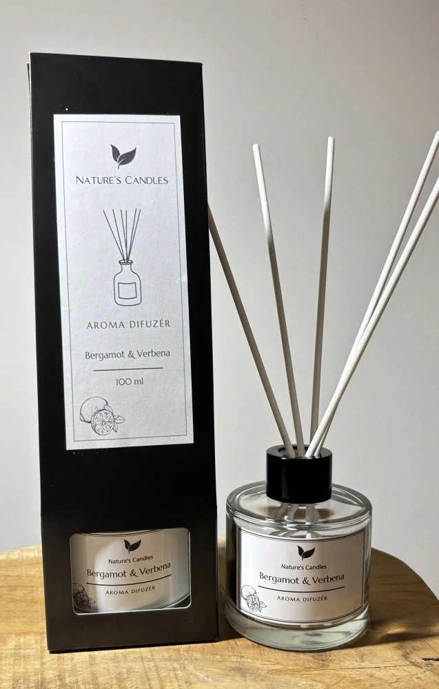 Aroma difuzér s vůní Bergamotu & Verbeny, krásná svěží vůně, dokonale kombinující verbenu a citron. Velmi dobře vyvážená vůně, která není příliš ostrá.