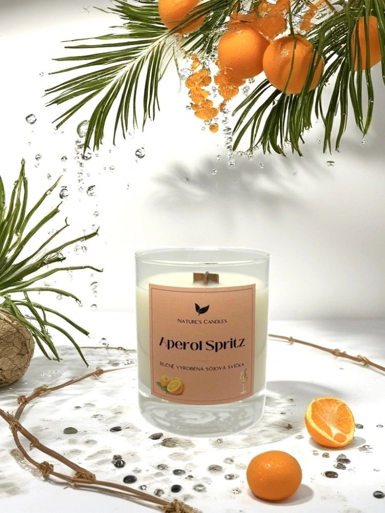 Sójová svíčka s vůní Aperol Spritz, osvěžující a jiskřivá vůně, která připomíná letní koktejly, západ slunce a bezstarostné chvíle. Vytvořená tak, aby vám každý okamžik připomínala dovolenou u moře.