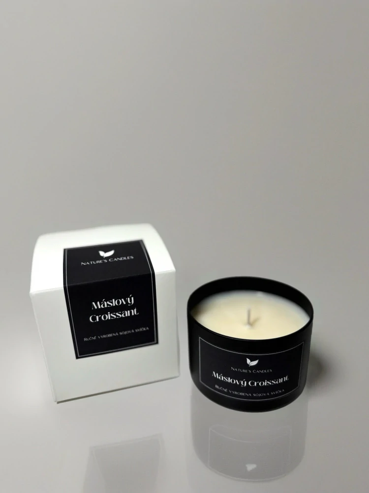 Sójová svíčka s vůní Máslového croissantu, čerstvý z trouby, jehož povrch se leskne máslovou přitažlivostí. S každým soustem se drobí jemná křupavost a odhaluje vrstvy tak vzdušné, že se zdá, že vzdorují gravitaci.