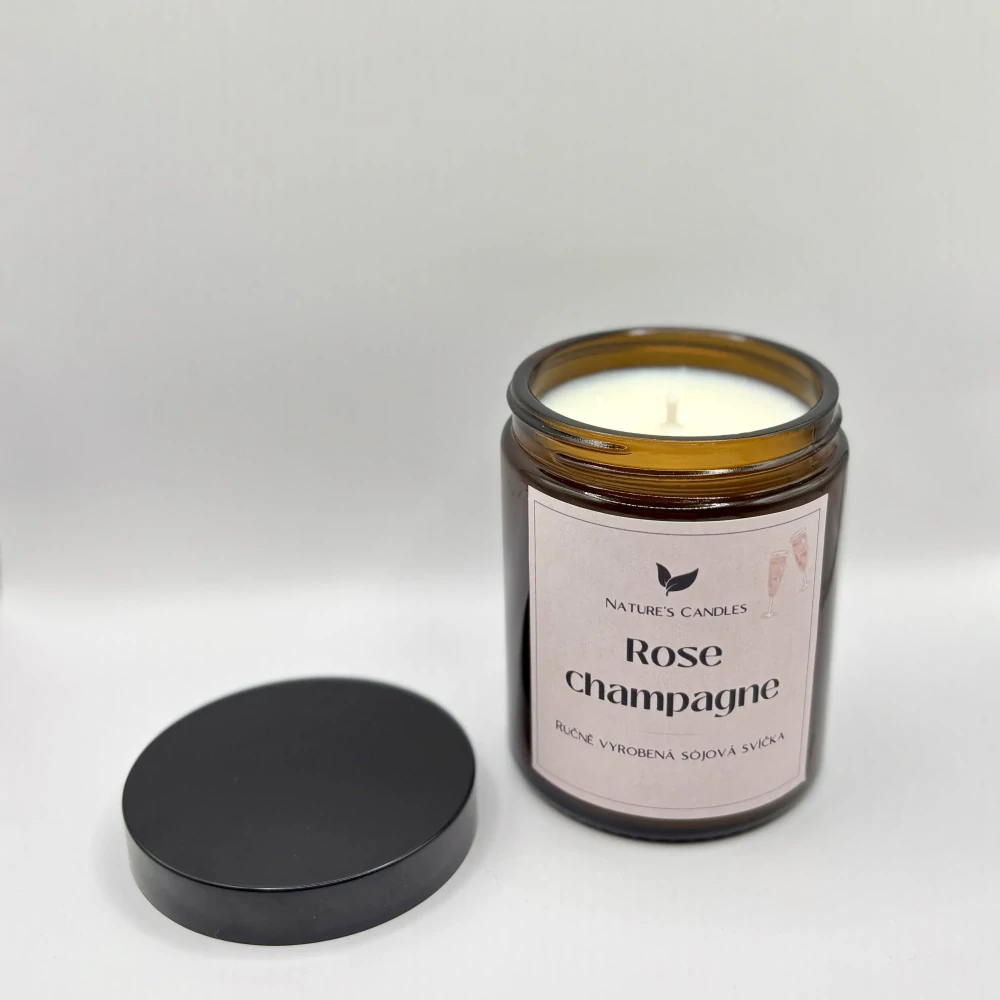 Sójová svíčka s vůní Rose Champagne, osvěžující a lehce navinulá ovocná vůně právě otevřené lahve Prosecca.