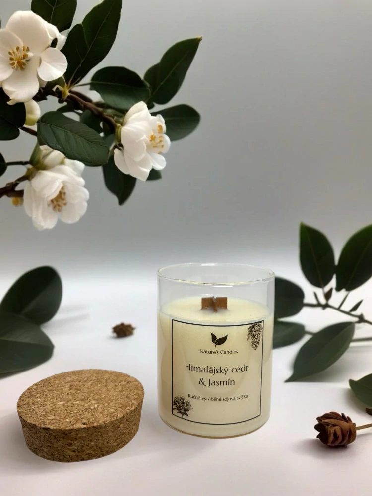 Sójová svíčka s korkem - Himalájský cedr & Jasmín